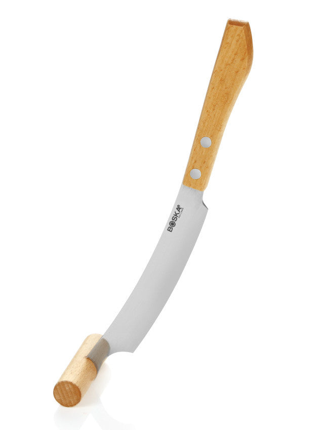 Cut blocks of cheese like a true Dutch cheese professional with this special cheese knife. The Geneva mini Dutch cheese knife takes its design from the authentic, professional Dutch cheese knife, also known as a mezzaluna. The curved knife makes cutting cheese very easy; you simply rock your way through the cheese. What's more, it's a safe knife, thanks to the two handles that allow you to hold the knife with both hands while cutting. Add authentic taste and style to your kitchen with the Geneva mini Dutch cheese knife. Because of the wooden handles, we recommend you clean the mini Dutch cheese knife with hot, soapy water and not in the dishwasher.