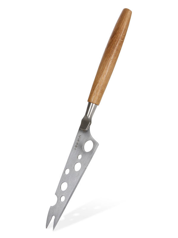 This cheese knife is suitable for cutting all kinds of cheese, but works especially well on soft cheeses. The ergonomic oak handle sits comfortably in the hand, and because the razor-sharp stainless steel blade has holes, the cheese won't stick to it. You'll probably be tempted to use it on anything you want to cut!