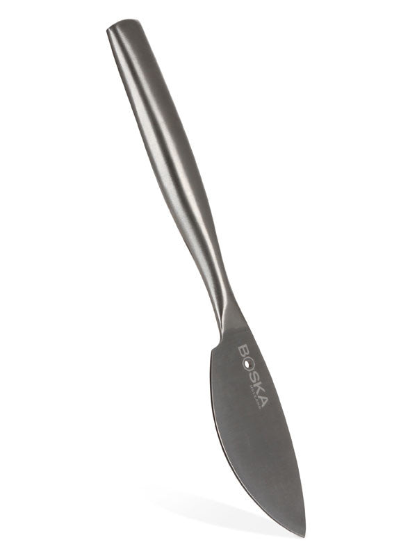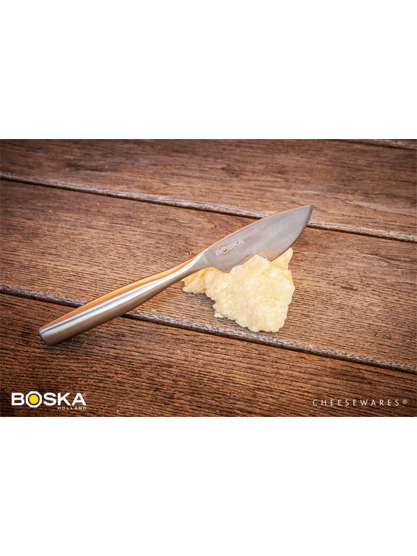 The Parmesan Knife Monaco from the Pro Collection is specially developed for cutting very hard cheese. The pointed oval blade ensures a perfect cut. The knife is manufactured from a single piece of stainless steel for stability, durability and firm control. Dishwasher safe with a 10 year guarantee.