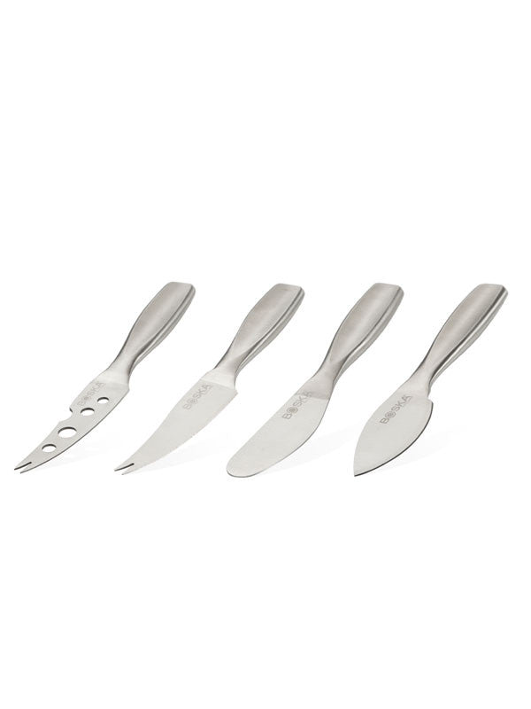 This Cheese Set Mini from the Pro Collection includes four mini knives: a Parmesan cheese knife, spreading knife, cheese knife and a cheesy knife. All of the knives are high-quality stainless steel, and designed to serve all types of cheese, from soft spreadable to very hard. This mini set is ideal for putting out a cheese display with drinks. It just makes entertaining and sharing good times with friends that much easier! Dishwasher safe plus you get a 10 year guarantee.