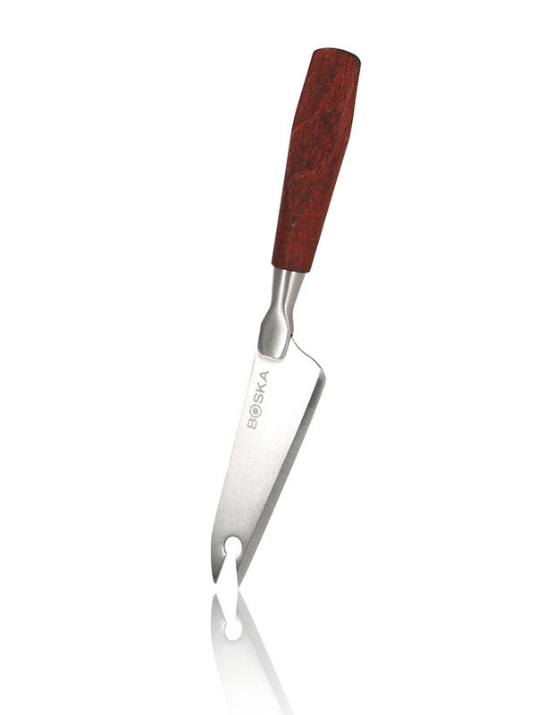 The Mini Taste cheese knife set is a tasteful mix of three quality stainless steel knives finished with dark wooden handles. It includes a knife with a light blade for soft cheeses, a spreading knife and a conventional cheese knife.