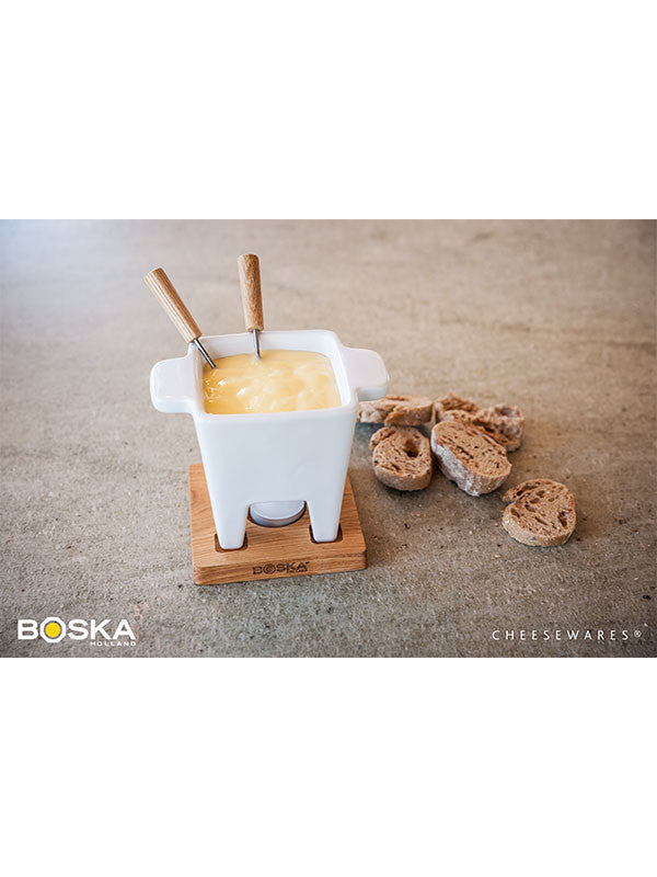 With its oak base, a pretty candle and two stainless steel forks with oak handles, this tapas fondue set is easy to love.